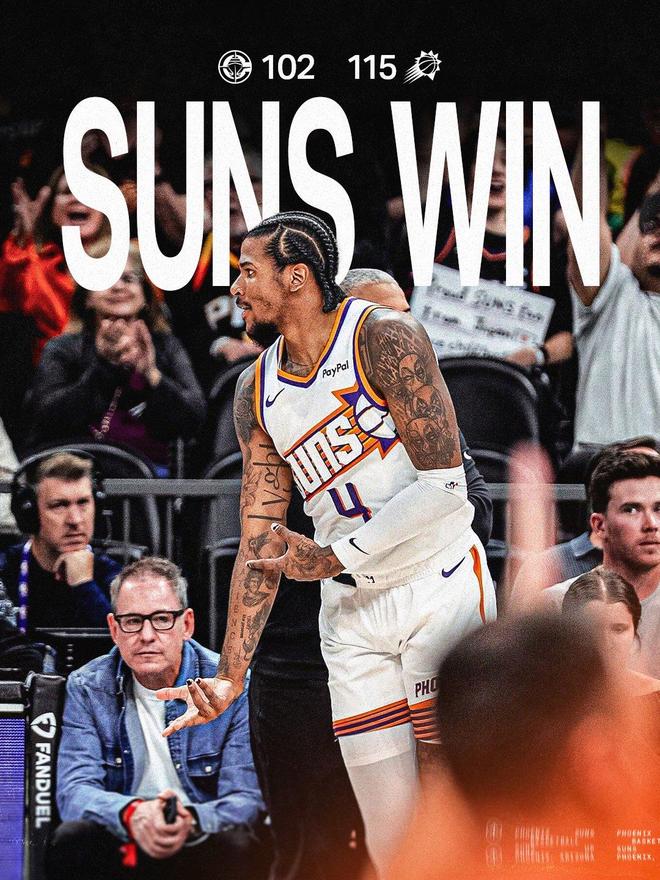 太阳队,阿伦13中7,三分球9中4砍下了18分3板4助3断,在攻防两端发力。奥尼尔11中6,三分球10中5独得17分4板2助、马克威廉姆斯13分10板2断、瑞安邓恩10分5板3助、理查兹3分3板、吉莱斯皮1分5板7助、伊戈达罗3板1助。